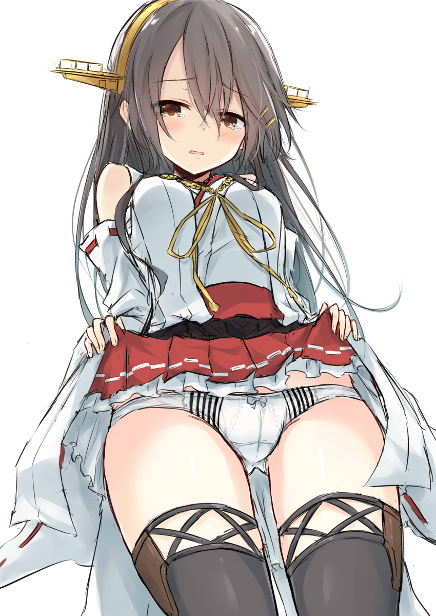 【図鑑説明】 高速の巡洋戦艦、榛名です。 国産の四一式36センチ砲を装備しました。 呉鎮守府の江田島で最後まで空を睨んで奮戦したわ。 高速戦艦四姉妹で最期まで、戦い抜いた榛名のこと、覚えていてね。